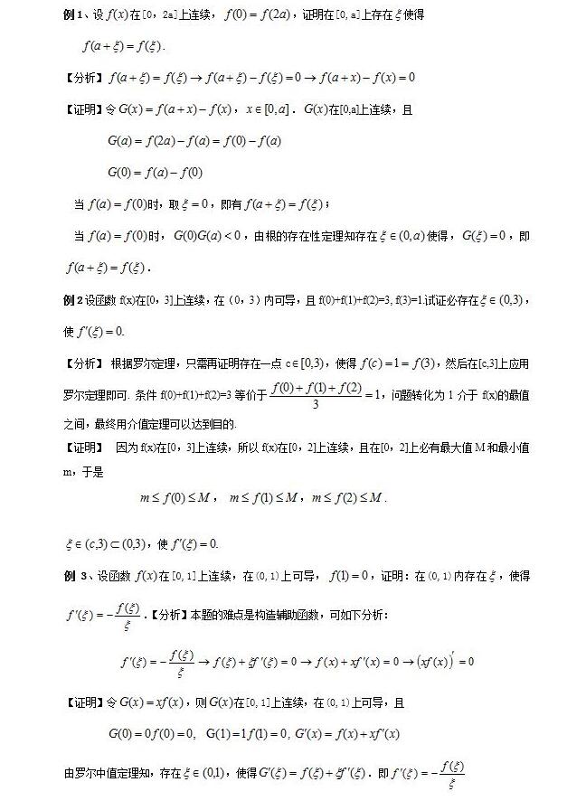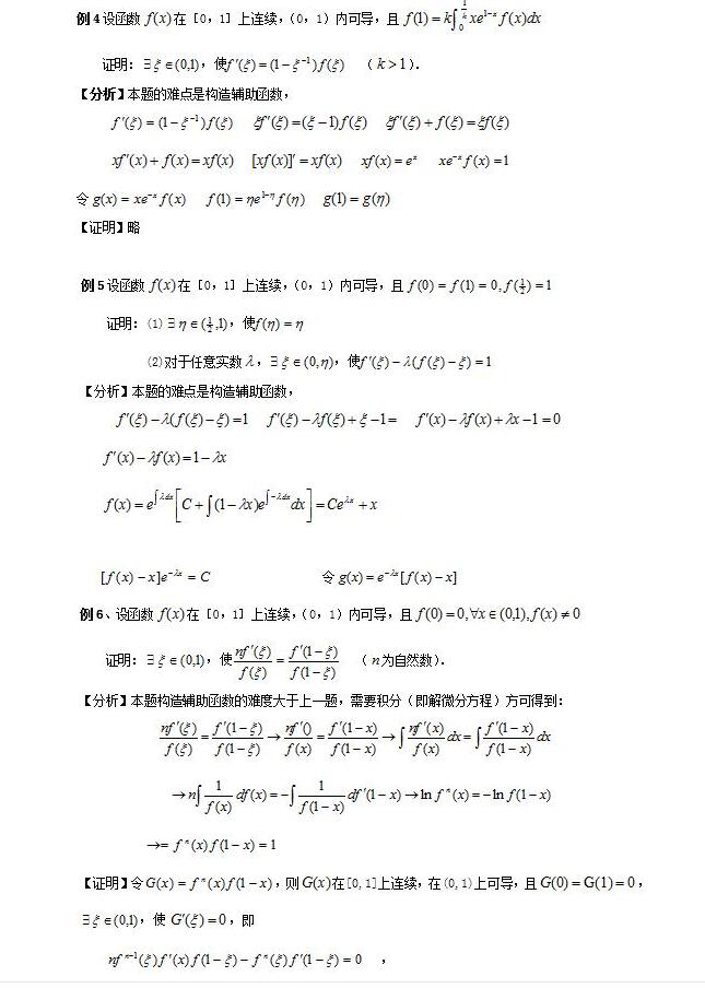 存在性证明中成功构造辅助函数是解题的关键。辅助函数大多来源于结论,从对结论的分析中得出辅助函数。