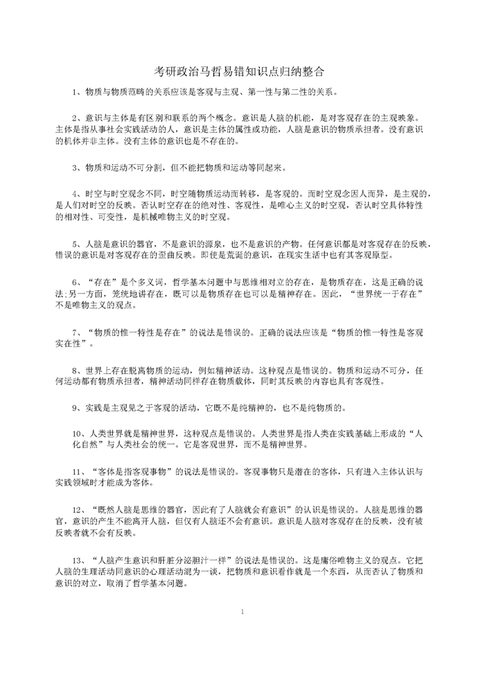 2021考研政治:马哲易错知识点总结(可打印)