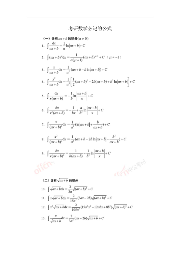 2021考研:数学要记的公式(可打印)