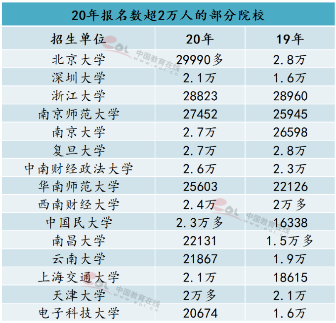 其他未公布报考人数,但可能也是考研“扎堆”的院校:武汉大学、华中科技大学、四川大学、山东大学、厦门大学、上海大学。