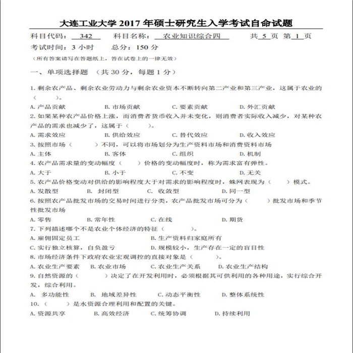 2021考研同学注意啦,现在已经进入紧张的复习阶段,小编整理的“ 大连工业大学17年考研初试342农业知识综合四专业课真题”希望对同学们有所帮助!学起来吧~更多资讯请关注新东方考研频道