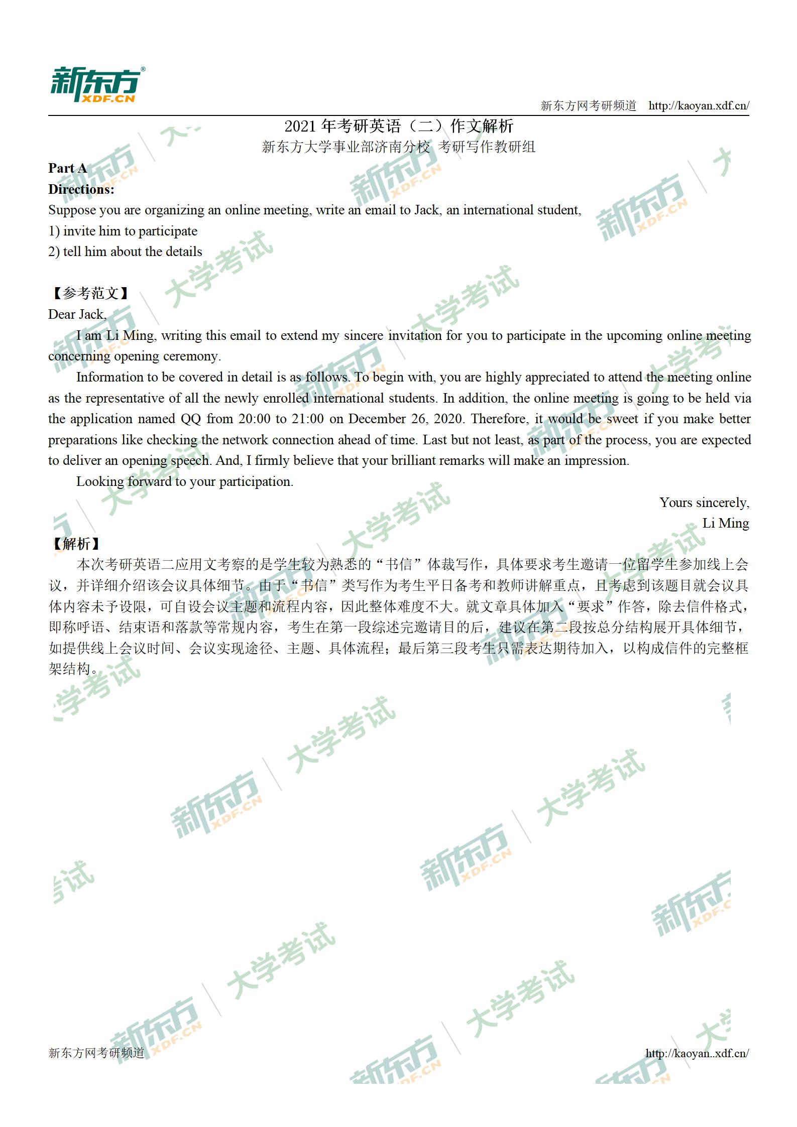 2021年考研英语二作文题目及范文解析(济南新东方)