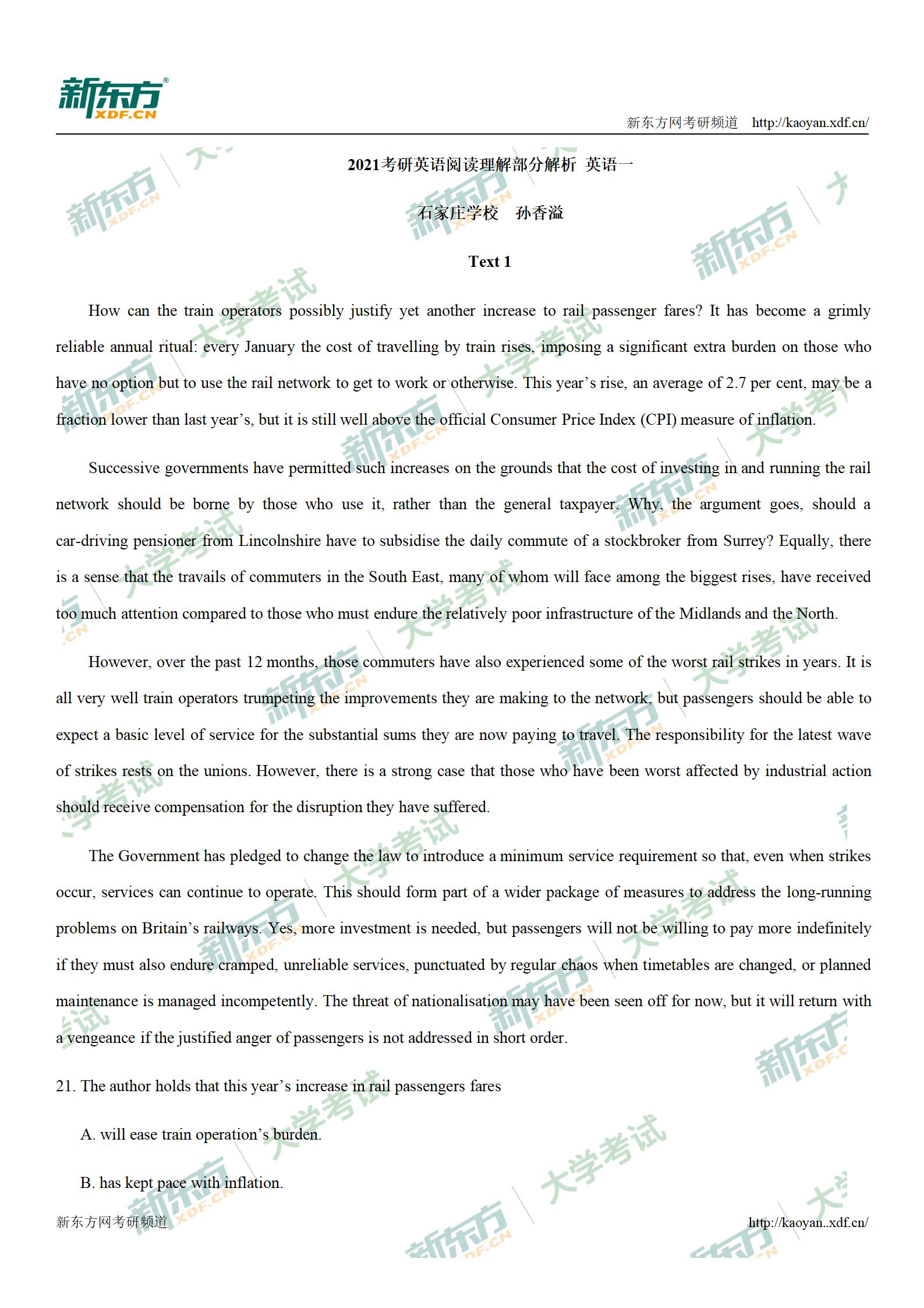 2021考研英语一阅读理解试卷答案解析(石家庄新东方)