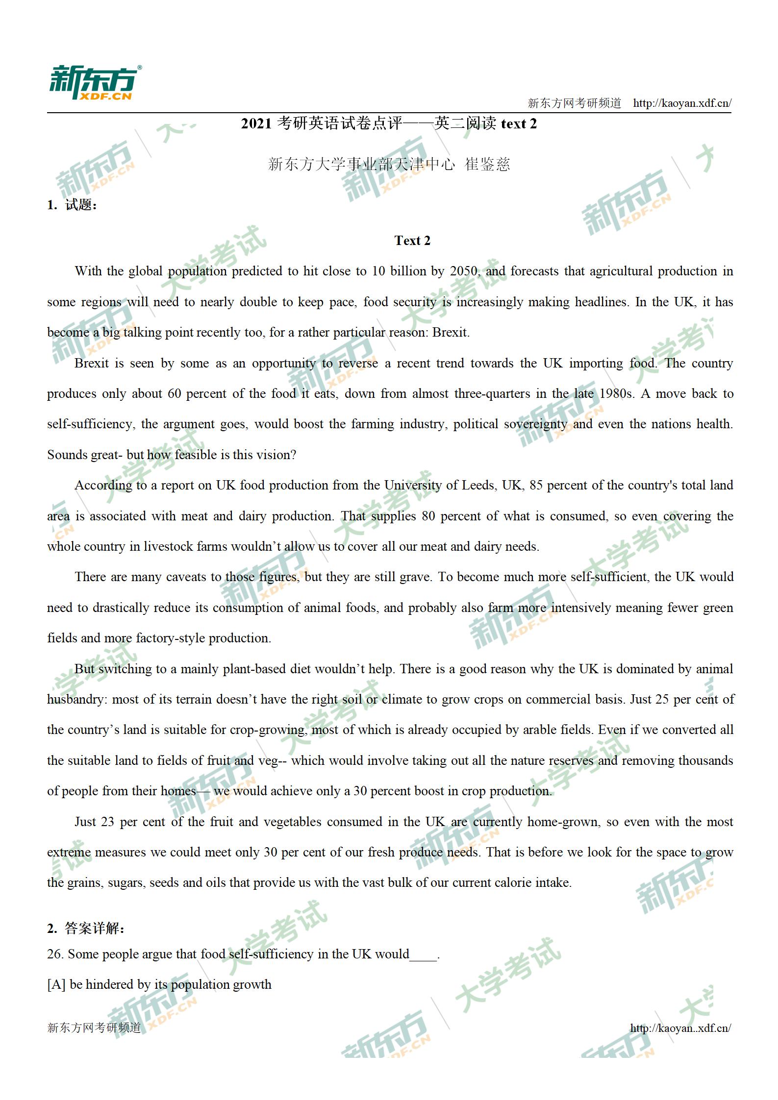 2021考研英语二阅读text 2试卷点评(天津新东方)