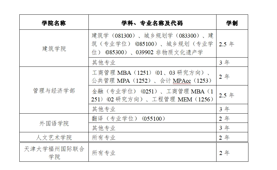 12.我校非全日制招生专业(工商管理、公共管理、工程管理和单独考试专业除外)均安排在236专业学位教育中心招生、培养,其培养方案(含学费、学制)参照所报考专业研究方向对应学院执行。具体专业以《天津大学2024年硕士学位研究生招生专业目录》为准。