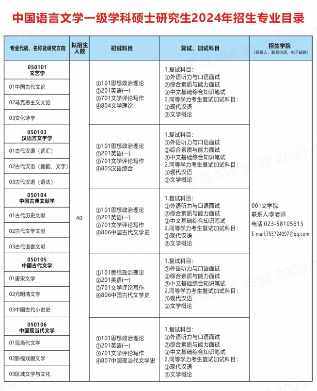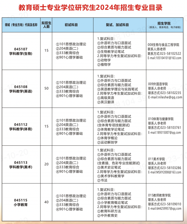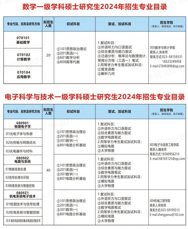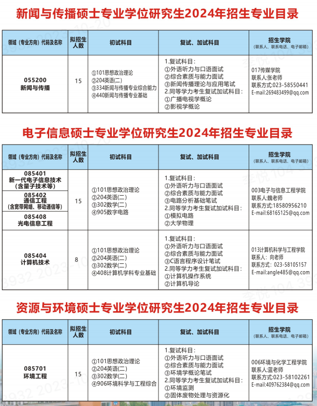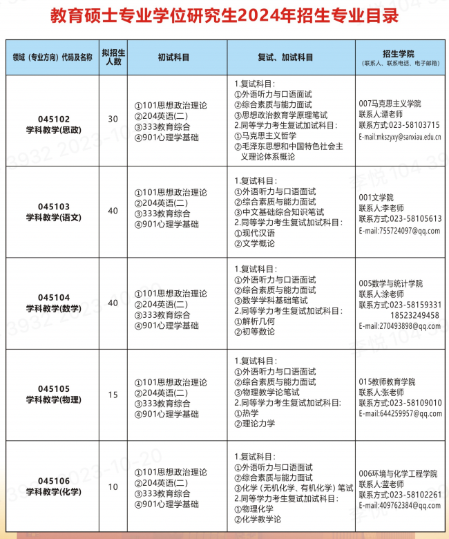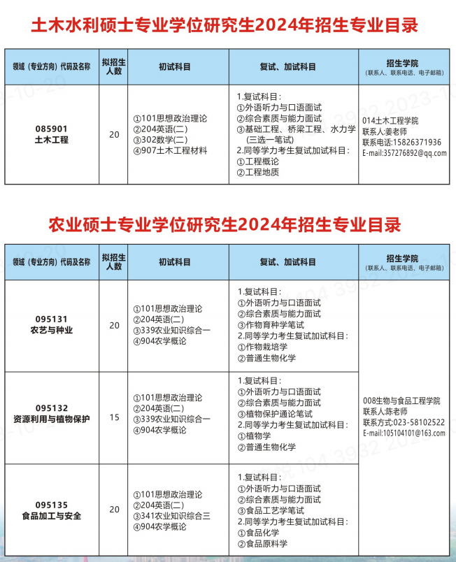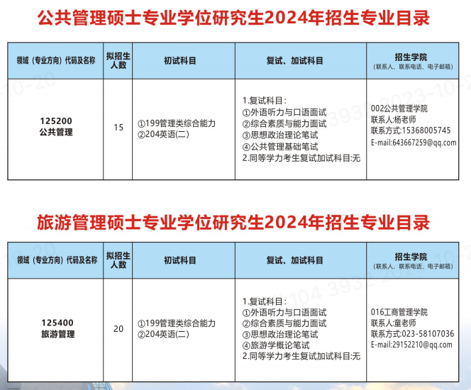 2024年重庆三峡学院研究生招生专业目录已发布,详细介绍了重庆三峡学院专业代码及专业名称、拟招生人数、考试科目、复试科目等,帮助备考2024考季的同学快速查找重庆三峡学院研究生招生相关信息!