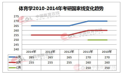 2015年研究生考试初试正式落下帷幕,考生终于可以休整一段时间,迎接接下来的复试。相信大家也在翘首期盼着考研国家复试分数线的公布。据悉,2015年将首次按照招生单位所处省份,将全国分为一区、二区,分别划定考生进入复试的分数线。为让广大研友能够更方便快捷地对比历年分数,本文汇总了2010年至2014年体育学专业的国家复试分数线数据,希望能更清晰直观的展示体育学历年的分数线走势: