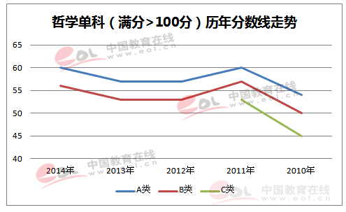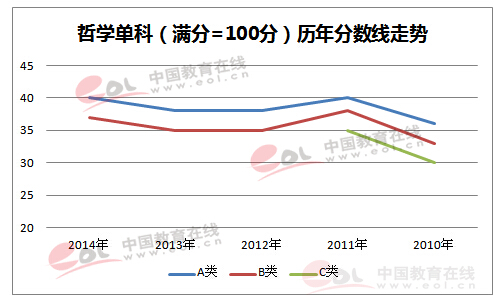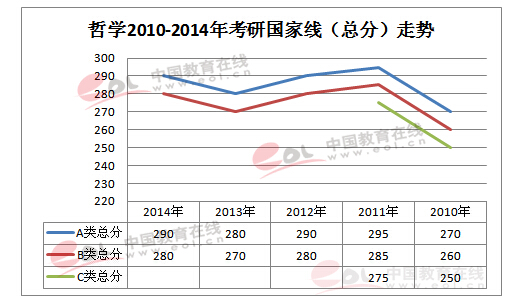 2010-2014年考研复试分数线趋势图:哲学