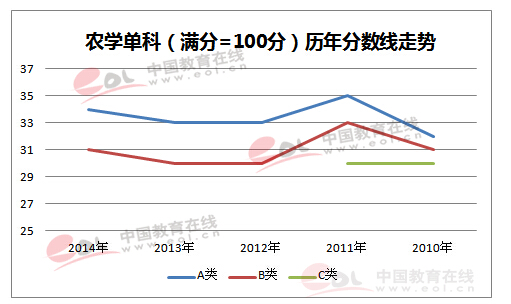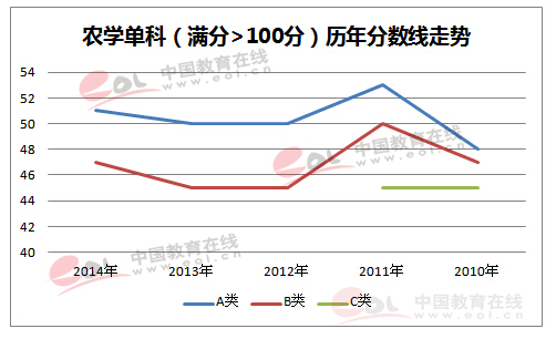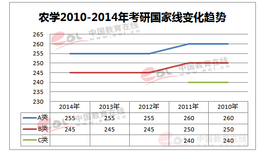 2015年研究生考试初试正式落下帷幕,考生终于可以休整一段时间,迎接接下来的复试。相信大家也在翘首期盼着考研国家复试分数线的公布。据悉,2015年将首次按照招生单位所处省份,将全国分为一区、二区,分别划定考生进入复试的分数线。为让广大研友能够更方便快捷地对比历年分数,本文汇总了2010年至2014年考研农学专业的国家复试分数线数据,希望能更清晰直观的展示农学历年的分数线走势: