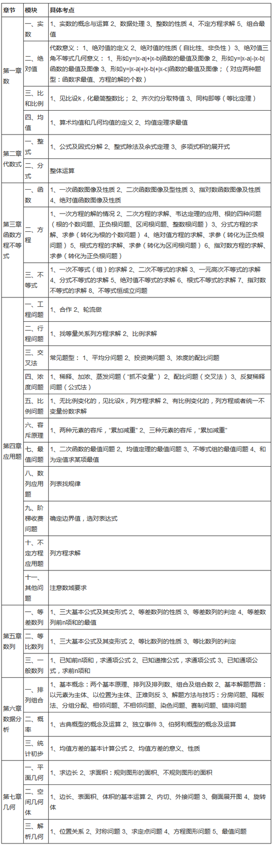 马上就要考试了,本文把管综初数中涉及的考点分章节给大家梳理一下,考生可对照以下考点,查漏补缺。
