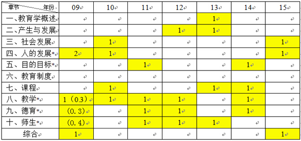 一、09-15年教育学原理考研真题大题所在章节分布