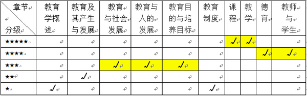 从表1中可以看出教育学原理大题主要出在课程、教学和教师与学生等章节,教育与人的发展和德育章节也是重点,从命题趋势来看,课程、教学、德育和教师与学生章节是今年考试需要复习的重中之重。