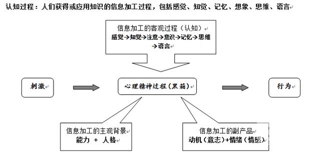 心理学是关于个体行为及精神过程的科学的研究,为了达到研究内隐的精神过程的目的,我们通过刺激与外部行为共同进行推测