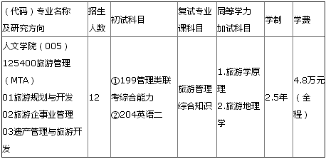 宁波大学旅游管理硕士2016考研调剂信息