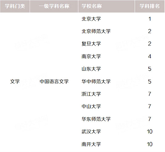 “中国语言文学”——北京大学位居第一