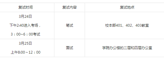 3、复试时间:2016年3月24日--3月25日,具体安排如下: