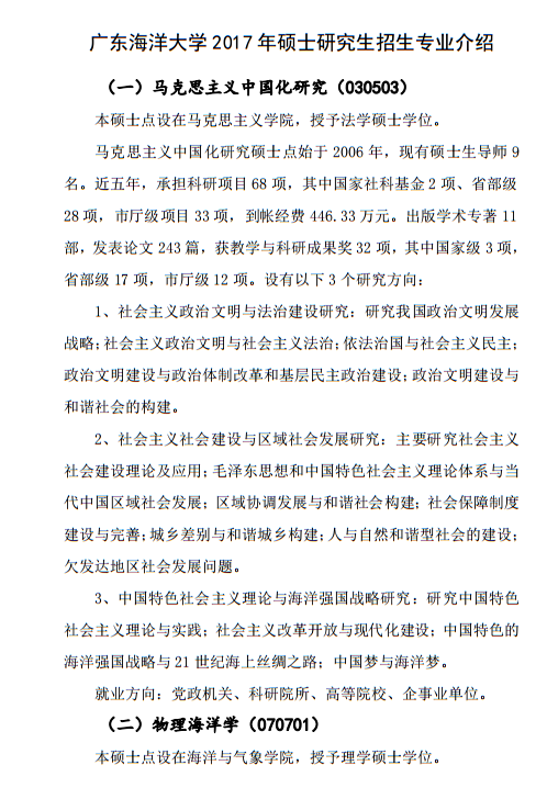 广东海洋大学2017考研专业目录文件已公布,该文件详细介绍了广东海洋大学考研招生各专业详细情况,具体内容请点击下载以下附件后了解: