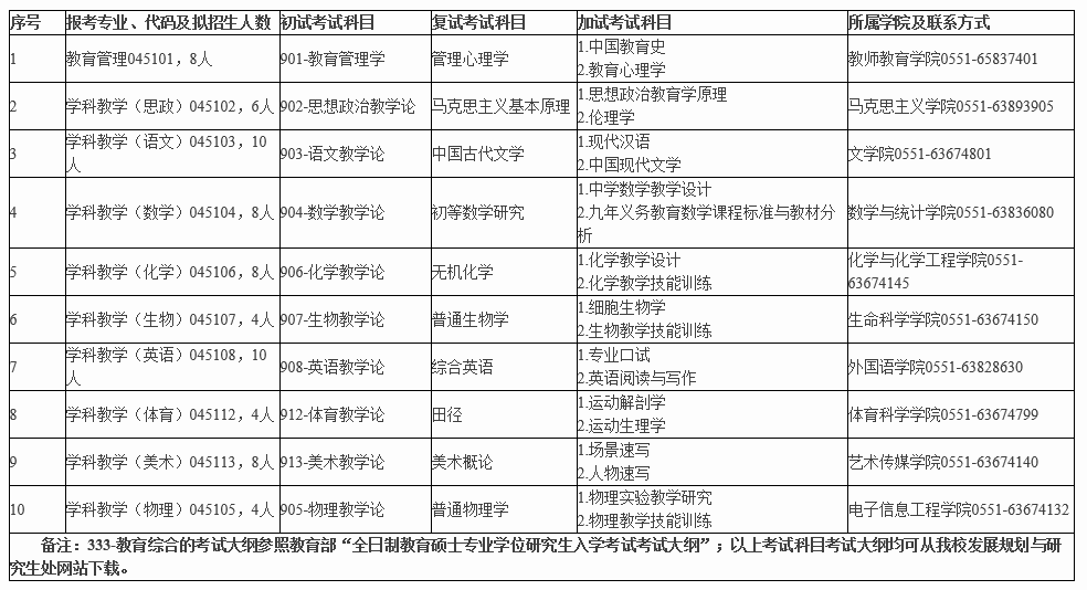 合肥师范学院2017年全日制教育硕士专业学位研究生招生简章