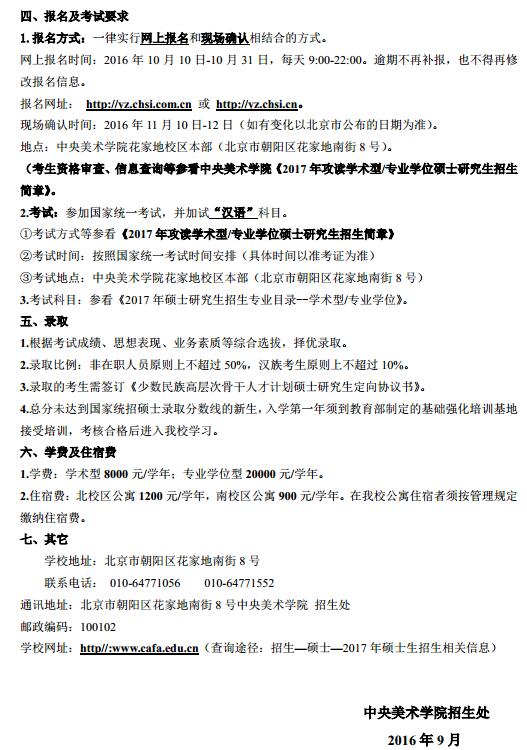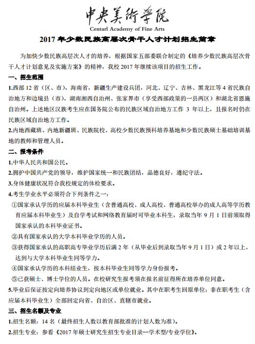 中央美术学院2017年“少数民族高层次骨干人才计划”招生简章