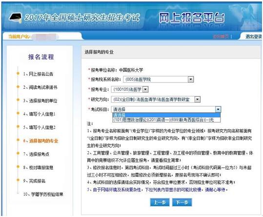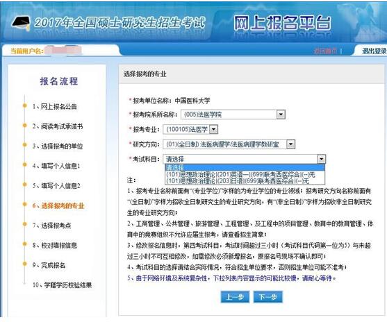 例如:A同学想申报法医病理学(包含法医毒理学)研究方向,请选择“法医病理学/法医病理学教研室”(按教研室进行申报)。如下图所示: