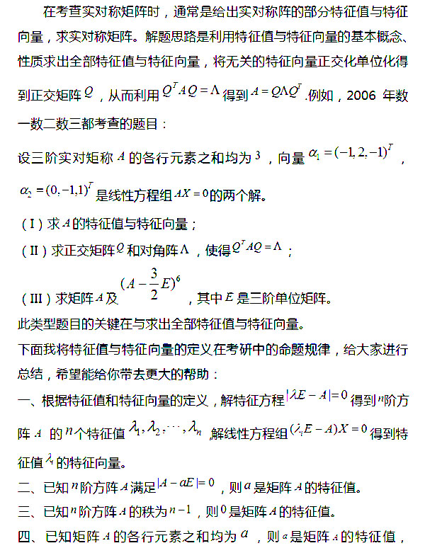 2017考研数学考察重点:特征值与特征向量