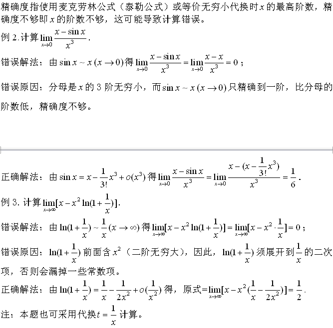 2、使用麦克劳林公式(泰勒公式)或等价无穷小代换时,精确度不够