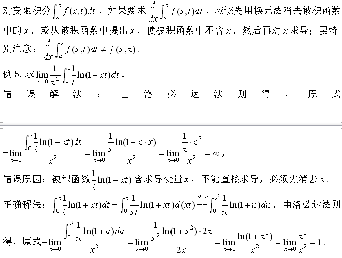 4、对变限积分,当被积函数中含求导变量时,直接对它求导