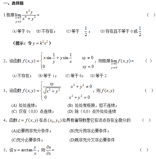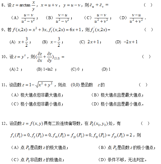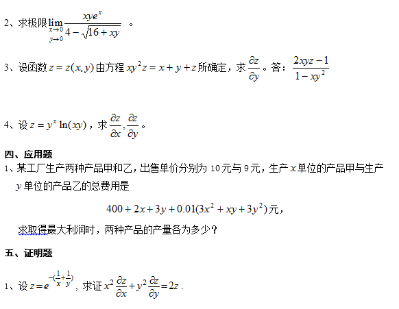 2017考研数学冲刺刷题:多元函数微分法应用练习及答案