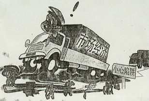 As the picture given depicts, the socialist market-oriented economy in our country is developing rapidly, just like a truck running at a high speed. But the general public is surprised to find that there are more and more fake and inferior products seriously hampering the expansion of our market economy. Consumers have to be very careful in purchasing goods and services they need; otherwise they will fall into the traps set by the illegal manufacturers.