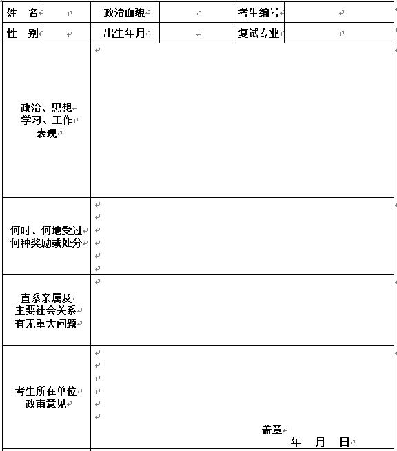 赣南师范大学2017年硕士研究生招生复试政治审查表.doc