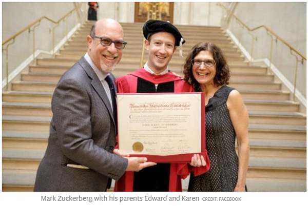 今天 @哈佛校友 马克•扎克伯格用一个哈佛学位圆了他父母的梦。