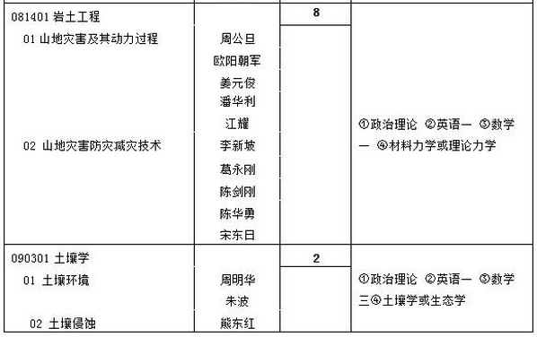 成都山地灾害与环境研究所2018考研专业目录(学硕)