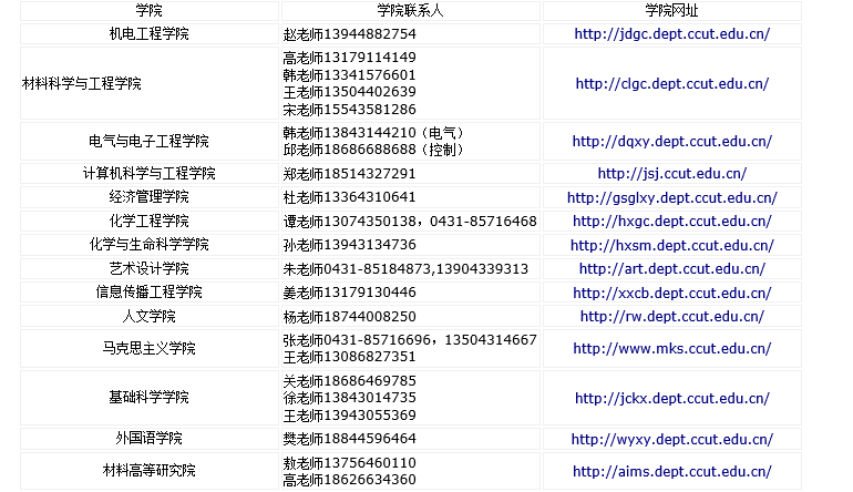 长春工业大学各研究生培养学院2018年调剂工作联系人及网站