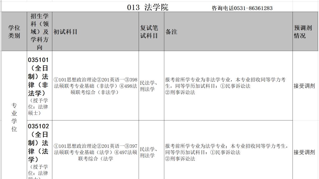 山东建筑大学2019法学院法律硕士考研预调剂通知