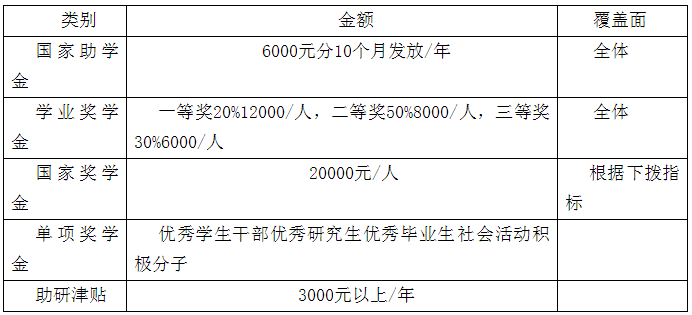 2、研究生在校学习期间享受包括研究生国家助学金、研究生学业奖学金、顾氏奖学金等多种研究生奖助学金。具体标准如下:
