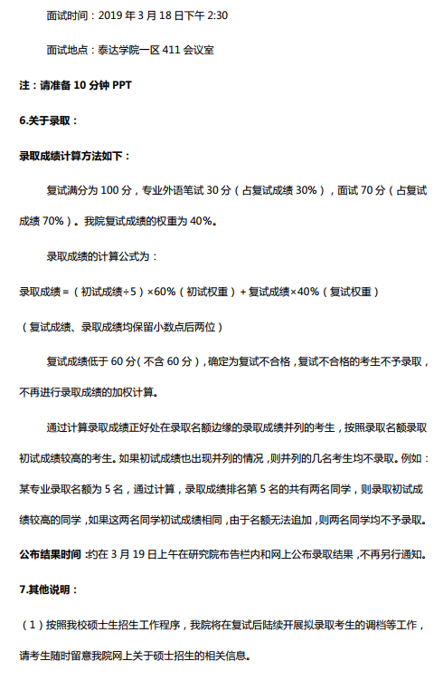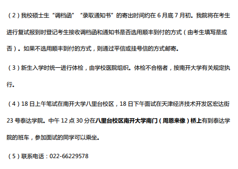 2019南开大学泰达生物技术研究院考研复试时间及地点