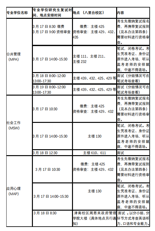 2019南开大学考研复试时间及地点