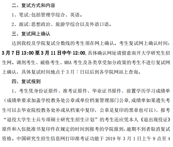 2019南开大学旅游与服务学院考研复试时间及地点