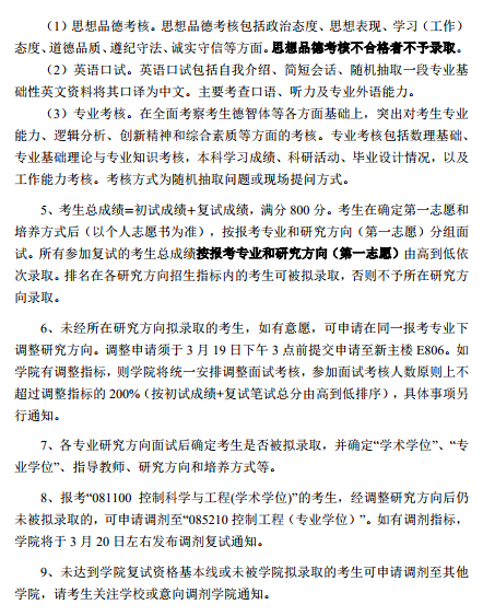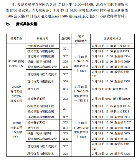 2019北航自动化科学与电气工程学院复试工作方案