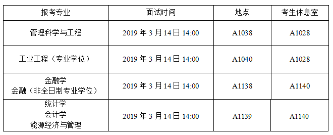复试资格审查时间:2019年3月14日9:30-10:30.
