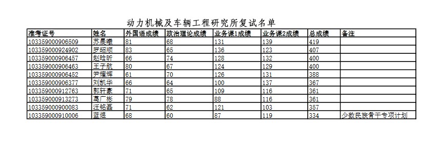 动力机械及车辆工程研究所(车辆所):车辆工程1名,动力机械及工程4名,动力工程2名;