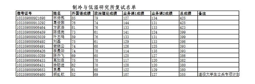 制冷与低温研究所(低温所):制冷及低温工程5名,供热、供燃气、通风及空调工程1名,动力工程3名;