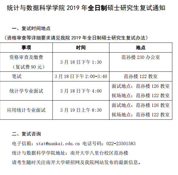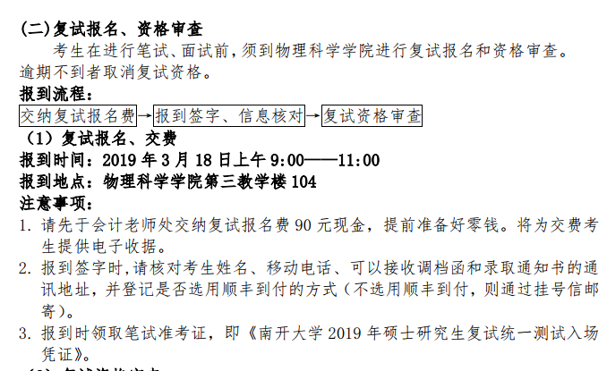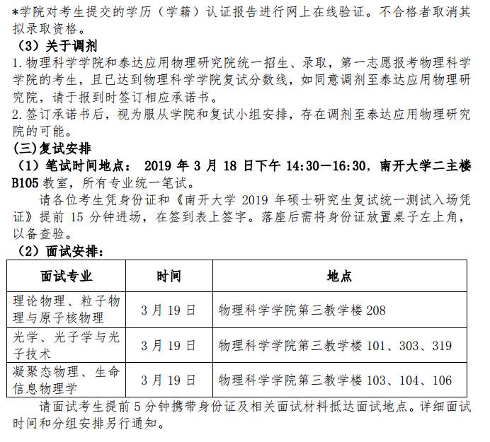 2019南开大学物理科学学院&泰达物理学院复试时间及地点