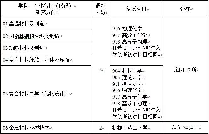 1.报考专业要求:复合材料、高分子、无机非金属、金属等材料类专业,化学、化工类专业,机械、焊接类专业。2.年龄不超过25周岁,身体健康。3.复试内容包括:专业课笔试,英语听力、口语测试,综合面试,体检。