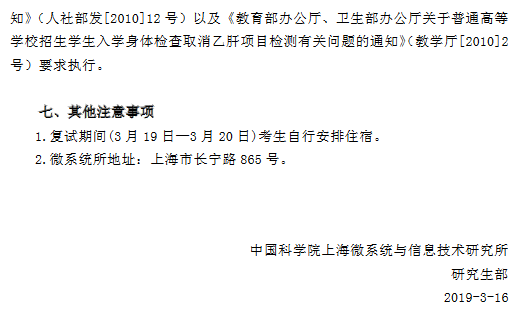 中国科学院2019上海微系统与信息技术研究所复试规程