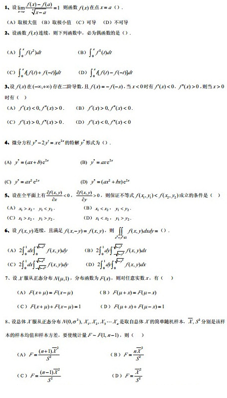 2020考研数学冲刺自测题(3)