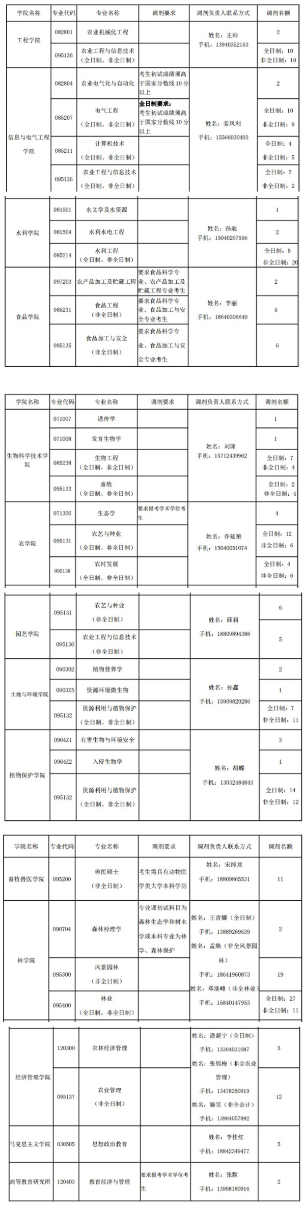 2019年沈阳农业大学考研调剂信息(第一批)公布如下: