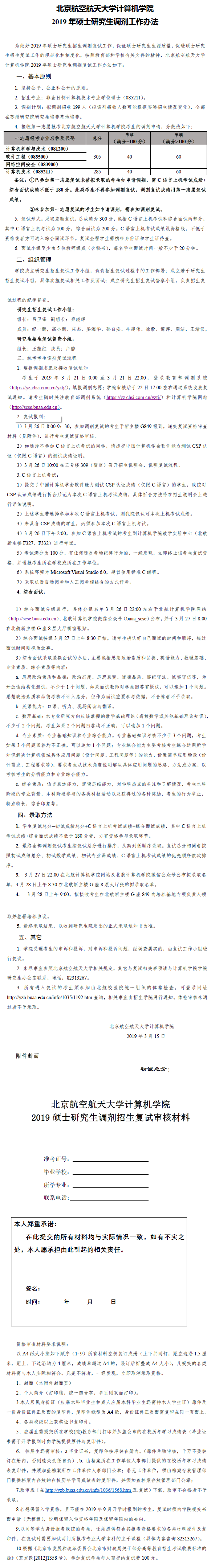 北航计算机学院2019硕士研究生招生调剂工作办法