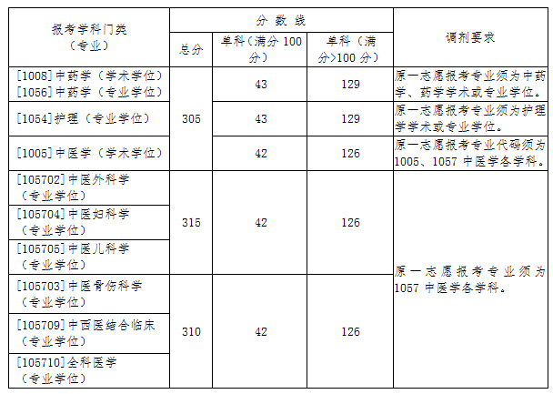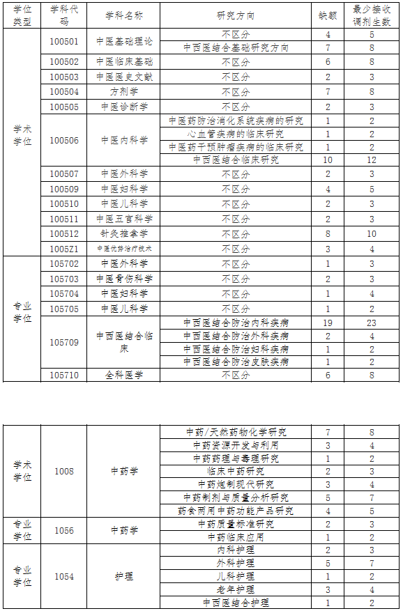 2.所有调剂考生均须通过“全国硕士研究生招生调剂服务系统”申请调剂。报考中医专业学位的考生允许调至学术学位,学术学位考生不能调至中医专业学位。