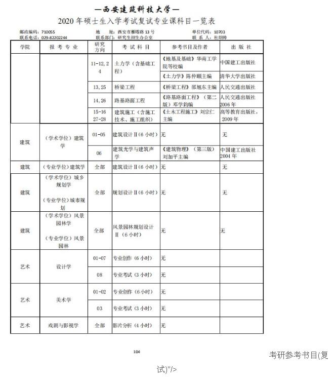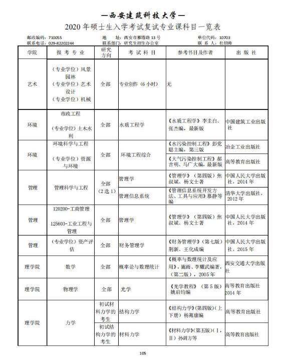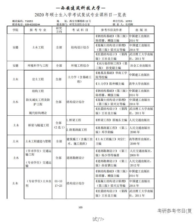 西安建筑科技大学2020考研参考书目(复试)
